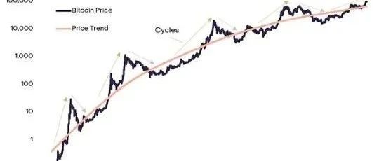 与许多实物商品一样,比特币的价格并不遵循严格的「随机游走」。相反,价格显示出统计动量的证据:价格上涨往往紧随涨势而来,价格下跌往往紧随跌势而来。在较长的时间范围内,比特币升值和贬值的行情反复出现使价格周期呈现出围绕历史上升趋势的现象。