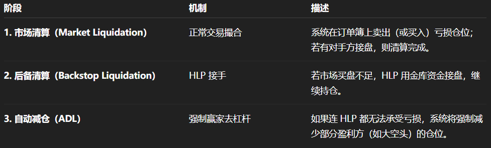 Hyperliquid 的清算过程可以想象成一场三层瀑布: