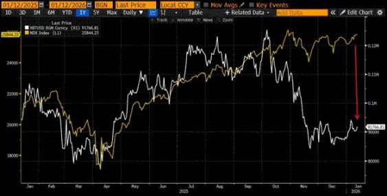 这正是 2025 年纳斯达克指数与比特币价格、美元流动性走势背离,并实现逆势上涨的原因。