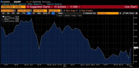 上图是美联储每周发布的美国银行体系贷款增长数据,名为「其他存款与负债(ODL)」。我是在阅读莱西・亨特(Lacy Hunt)的研究后关注这一指标的。2025 年第四季度起,银行开始增加放贷。银行发放贷款的过程,本质上是「无中生有」创造存款(即创造货币)的过程。