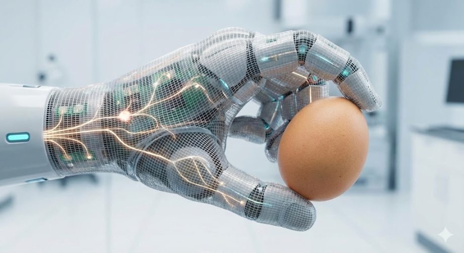 Physical AI 要想具备「手感」,需要电子皮肤来感知温度、压力、质感。这些「触觉数据」是以前从未被规模化采集过的全新资产。这可能需要大规模的传感器采集,CES 上 Ensuring 公司展示的「量产皮肤」一只密密麻麻手上就集成了 1,956 个传感器,所以才能有机器人拨鸡蛋的神奇效果。
