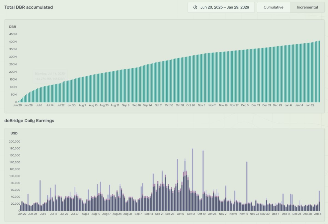 Debridge 在基金会网站上,动态公示协议收入与回购情况。每天的协议收入和基金增持的 DBR 清晰可见!
